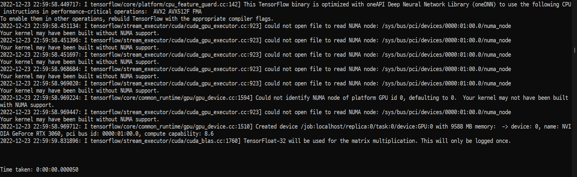 NUMA 오류는 WSL 세션의 부작용으로 텐서플로우를 사용하는것에 대해서는 지장이 없으니 무시해도 됩니다.