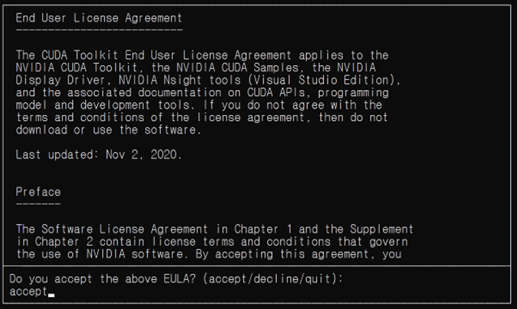 아래 그림처럼 나오면 accept를 입력후 엔터