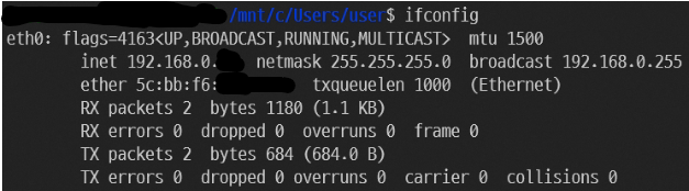 일단 WSL 상에서 ifconfig 명령어를 입력해보자.