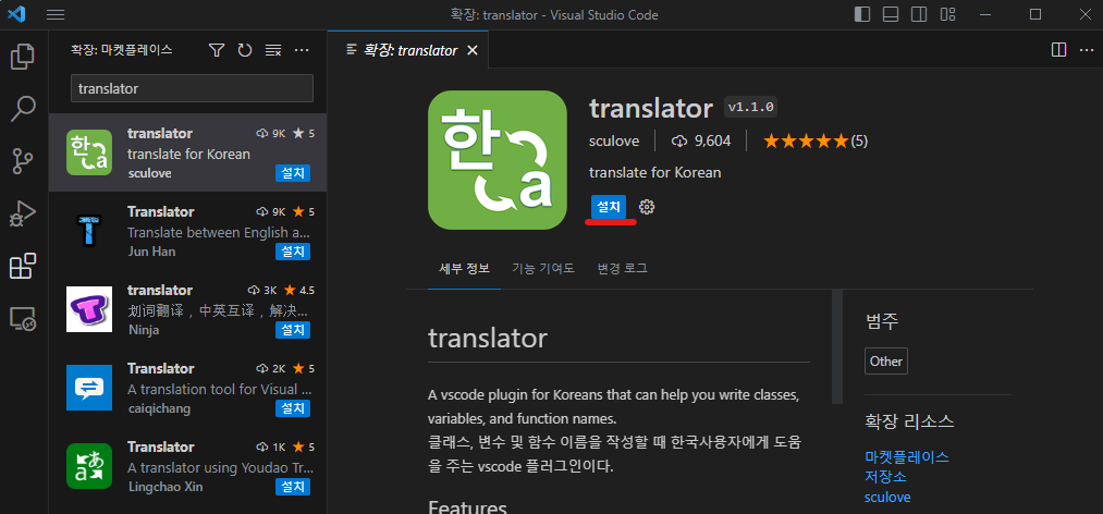 VScode로 코드 작성 중 모르는 단어/내용을 단축키로 바로 번역하거나 한글을 영어로 번역해주는 플러그인